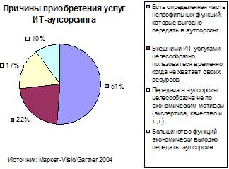 Причины приобретения услуг ИТ-аутсорсинга могут быть различными: необходимость осуществления ИТ-проектов в сжатые сроки; наличие передовых технологий у поставщиков ИТ-услуг, позволяющих значительно увеличить деловую активность компании; нехватка собственного ИТ-персонала; необходимость повышения качества услуг для внутренних пользователей; недостаточный уровень собственной ИТ-экспертизы или нехватка собственного оборудования.
